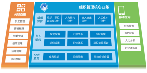 通過(guò)組織架構(gòu)搭建,形成以職位體系為基礎(chǔ)的企業(yè)人力資源管理架構(gòu),同時(shí)為企業(yè)的員工管理、假勤管理、薪酬核算及管控、績(jī)效管理、培訓(xùn)管理、招聘管理等人力資源業(yè)務(wù)的應(yīng)用提供基礎(chǔ)數(shù)據(jù)。
